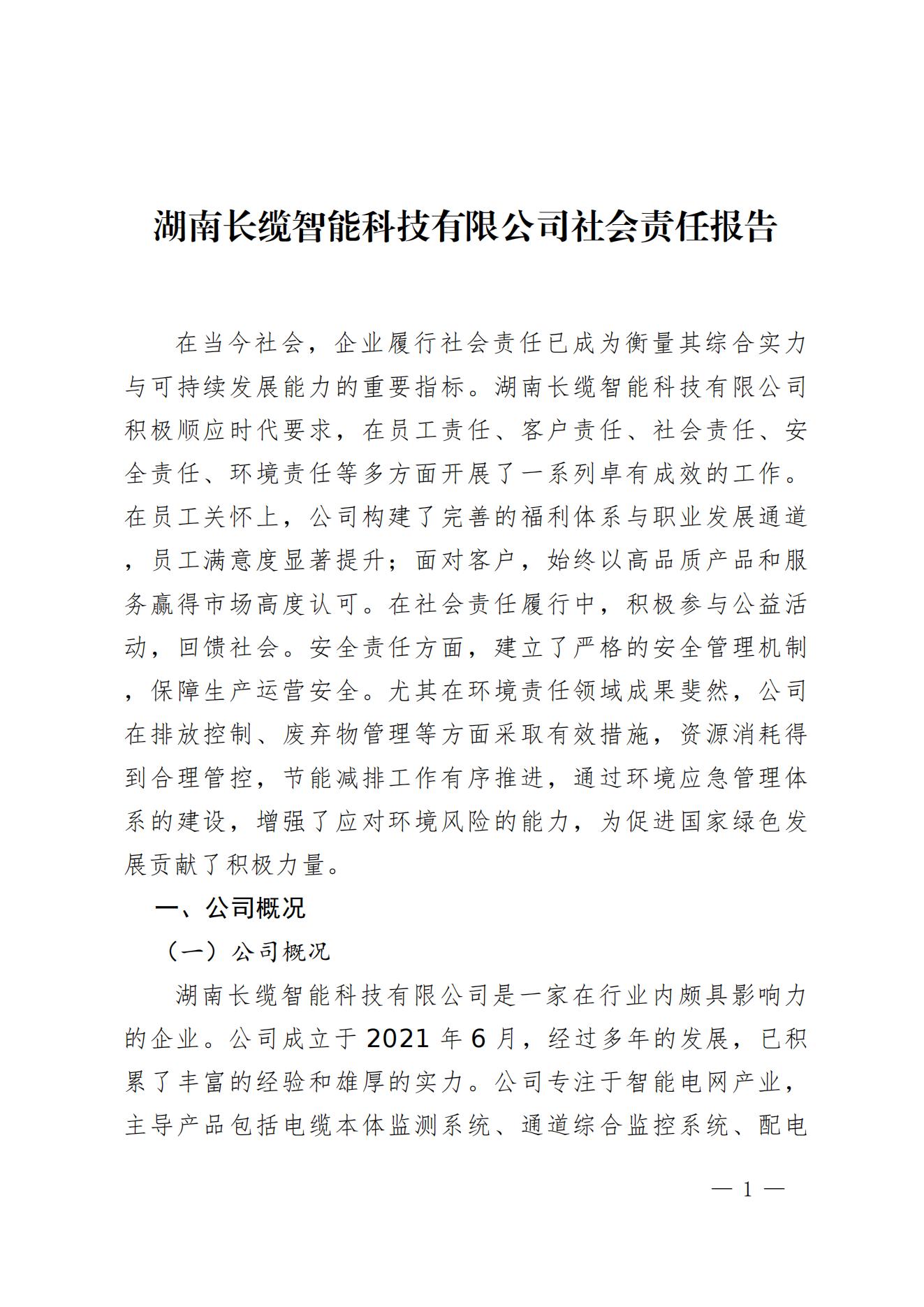 湖南長(zhǎng)纜智能科技有限公司社會(huì)責(zé)任報(bào)告信息公示
