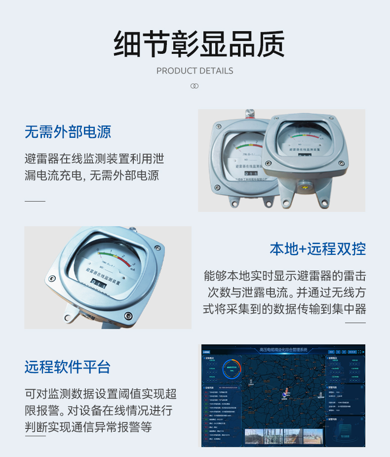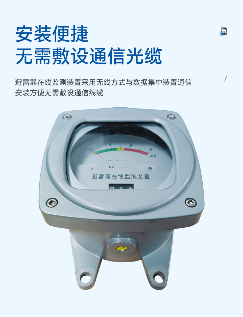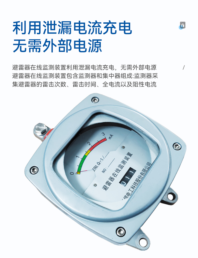 ? 避雷器在線監(jiān)測裝置利用泄漏電流充電,無需外部電源。