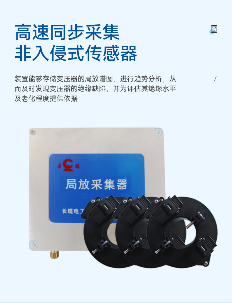 局放監(jiān)測裝置內(nèi)含高速低功耗采集卡,可對高頻脈沖電流傳感器的信號進行高速同步采集并將采集數(shù)據(jù)實時傳送給監(jiān)測主機。